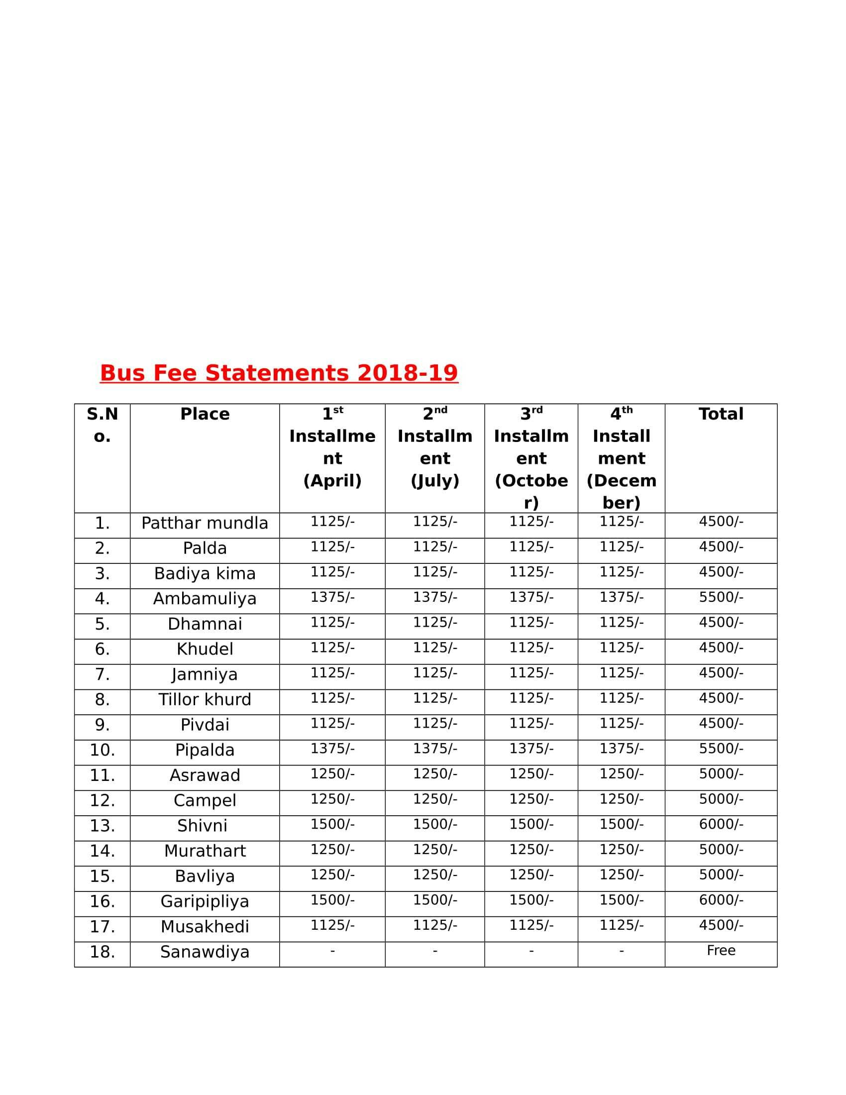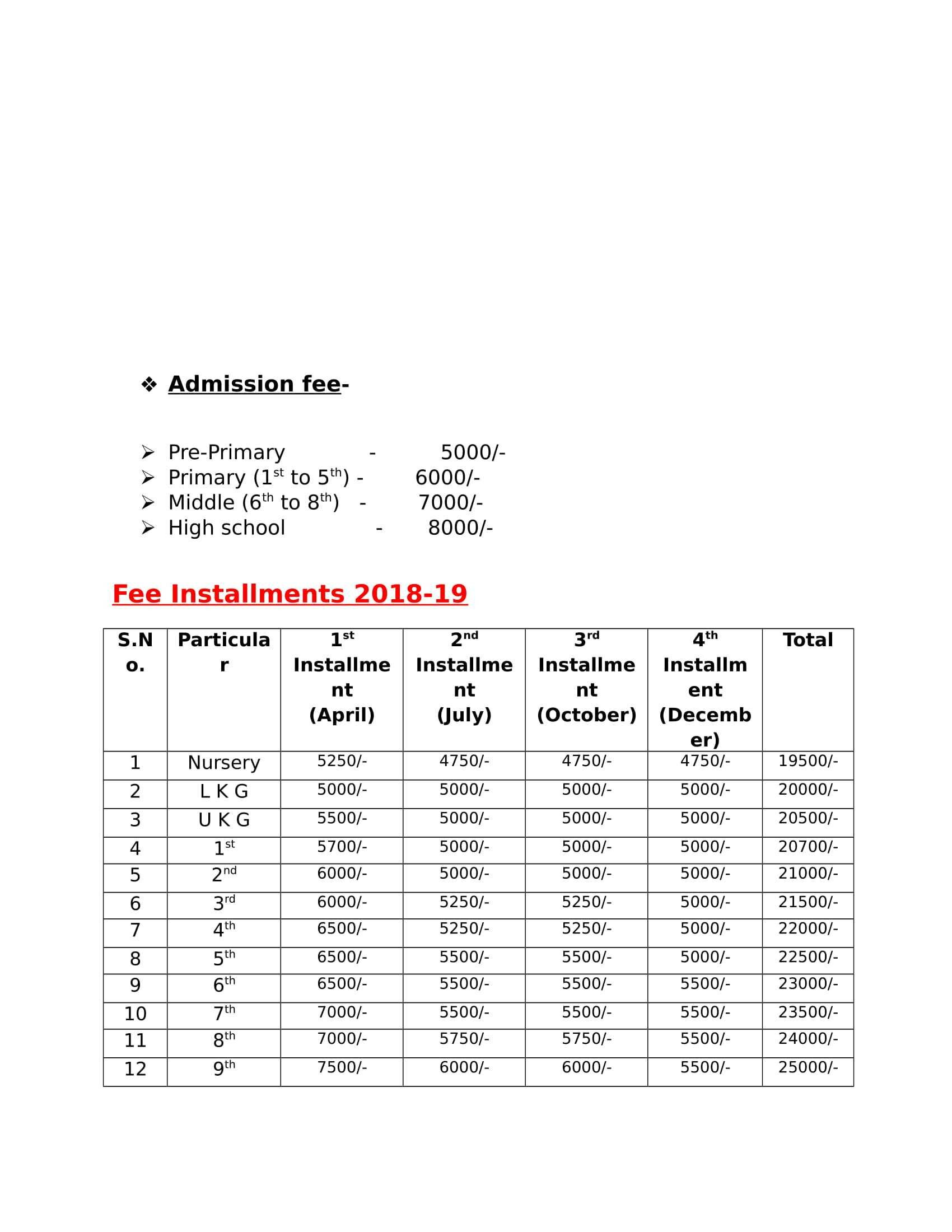 FEES STRUCTURE OF THE SCHOOL